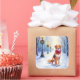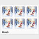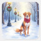 Sticker Carré Watercolor American Foxhound Snowy Lamppost