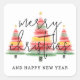 Beautiful watercolor Christmas trees topped with a gold star accent these square envelope seal stickers with Merry Christmas and Happy New Year in chic lettering. MATCHING items in our collection.