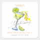 L'autocollant carré de week-end de célibataire présente un verre à margarita aquarelle vibrant et une tranche de citron vert sur la gauche, capturant parfaitement le thème "Margs & Matrimony". Le design adopte un style minimaliste, avec des accents colorés qui équilibrent amusement et élégance, reflétant le ton de célébration de l'événement.