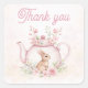 Sticker Carré Whimsical Pink Bunny Teapot Floral Thank you