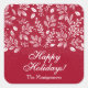 Sticker Carré White Botanicals on Cranberry Happy Holidays