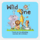 Sticker Carré Wild One Safari Animals 1st Birthday cartoon Invit