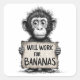 Sticker Carré Will Work for Bananas - Humorous Monkey Sketch