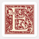 Une antiquité rouge décorative Lettre E monogramme initial par le designer anglais William Morris 1834-1896.
