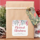 Autocollant de Noël avec feuillage festif et typographie moderne et script.