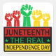 Justice sociale et Black History mot art autocollant caractéristiques des poings élevés avec "Junetten - le Jour de l'Indépendance Réel" texte dans Pan Afrique couleurs combo