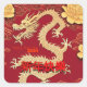Sticker Carré Yellow Dragon chinois Nouvel An 2024 avec Peonies