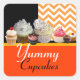 STICKER CARRÉ YUMMY ANNIVERSAIRE CUPCAKES / ORANGE CHEVRON BLANC