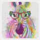 Cette impression d'aquarelle présente un portrait coloré d'un zèbre en lunettes orange ornées de fleurs | Par Fab Funky. ID d'image : 192221D