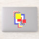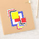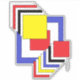 Cette oeuvre géométrique abstraite de Richard H. Fay présente un tableau de carrés dans les couleurs primaires du rouge, du bleu et du jaune, ainsi que du noir et du blanc.