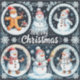 Carte de Noël colorée représentant le Père Noël joyeux, des rennes, des bonshommes de neige et des accents festifs. Parfaite pour les salutations saisonnières, les thèmes de vacances et les célébrations hivernales, capturant la joie et la chaleur de Noël.