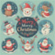 Carte de Noël colorée représentant le Père Noël joyeux, des rennes, des bonshommes de neige et des accents festifs. Parfaite pour les salutations saisonnières, les thèmes de vacances et les célébrations hivernales, capturant la joie et la chaleur de Noël.