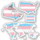 Autocollants vinyle taillés sur mesure avec des cartes des États-Unis, du Canada et du monde aux couleurs du drapeau de la fierté transgenre; LGBTQ design fierté