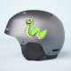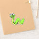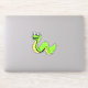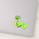 Ce sticker vinyle est un serpent de dessin animé vert néon et jaune clair avec de grands yeux blancs et souriant.