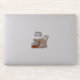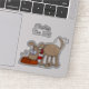 Pour les amoureux de les chiens : autocollant transparent avec un chien de style dessin animé mangeant son déjeuner à partir d'un bol de nourriture rouge. Vous pouvez ajouter du texte, par exemple le nom de votre chien favori ou le vôtre, ou laisser vide.