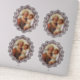 Ce bel autocollant de contour présente une image catholique traditionnelle de Saint-Joseph et de l'Enfant Jésus. Elle est entourée d'une bordure décorative marron.
