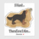 Hand-drawn Cavalier King Charles Spaniel art featuring a determined Black and Tan Cavalier King Charles Spaniel mid-hunt with the playful phrase I Hunt… Therefore I Am… This original Cavalier King Charles Spaniel design celebrates the natural instincts and confident personality of this charming breed in a fun barn hunt theme.