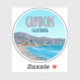Affichez l'océan Pacifique bleu aquatique vibrant, sous les montagnes de couleur rose de la ville endormie de surf Cayucos sur la côte centrale de Californie, États-Unis sur un autocollant comme souvenir de l'un des plus grands sites d'Amérique!