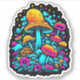 Art néon coloré avec champignons et fleurs bleus et roses et un arrière - plan noir.
