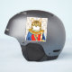 Sticker dans le portrait d'un chat rayé de tigre, habillé comme prince médiéval, en robes royales et un col orné, et portant un sceptre