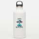Graphisme d'extraterrestre et d'OVNI pour ceux qui aiment l'ufologie. Un extraterrestre mignon descendu d'un OVNI. Le texte dit "Chasseur de OVNI" avec des autocollants noirs et turquoise.
