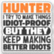 Chasseur Drôle Dit "Chasseur J'Essaie De Faire Des Choses Idiot Preuve Mais Ils Continuent À Faire De Meilleurs Idiots". Prenez ce dessin de Fantaisie Hunter comme un cadeau amusant pour une maman, un père ou un ami génial.