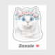 Ce design présente un joli chaton blanc portant un halo aux fleurs rose et bleue.