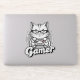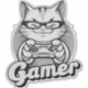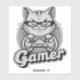 Dans ce design, plongez dans l'univers des jeux vidéo avec une esthétique raffinée et une touche de fantaisie féline. Vous découvrirez un chat arborant des lunettes noires et maîtrisant une manette de jeu rétro. L'œuvre, réalisée en monochrome, est relevée par des touches de couleur vives qui mettent en valeur les boutons de la manette, créant un contraste dynamique.