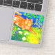 Autocollant représentant la peinture animale de Louis Wain Stalking Cat (1860-1939). Un chat rayé orange marche dans un champ vert la nuit. Les fleurs blanches, violettes et rouges sont au premier plan. Un cadeau merveilleux pour l'art amoureux des chats et anglais.