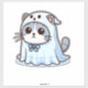 Sticker Chat en costume fantôme pour Halloween