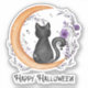 Sticker Chat noir et lune de croissant pour Halloween heur
