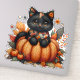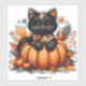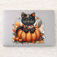 Sticker Chat noir sur Citrouille avec Motif de courtepoint