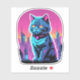 Un chat noir curieux est perché sur un toit, regardant par-dessus un paysage urbain illuminé au néon. Ce design capture l'attrait des aventures nocturnes.