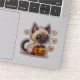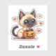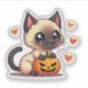 Autocollant de chaton siamois joueur dans le style kawaii chibi Halloween, parfait pour les amateurs de chats et les créations festives.