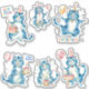 6 illustrations aquarelles de chats bleus célébrant un anniversaire. 🐱