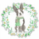 Cute Boston Terrier avec écharpe au crochet vert. Entouré d'une couronne verte