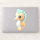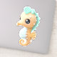 Sticker Cheval de mer bébé mignon en Turquoise et blanc