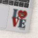 Découvrez Chibi Catwoman à l'intérieur d'un coeur rouge qui représente le "O" dans ce logo empilé "LOVE".