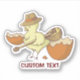 Un oiseau-poussette jaune à la sortie de l'oeuf de Pâques portant un casquette et tenant un bouzouki. Texte personnalisé.