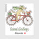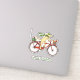 Un mignon chien de dessin animé portant un casquette d'hiver rayé vert et un long foulard et pédalant une bicyclette rouge. L'écureuil rouge gai est à cheval dans le panier de vélo. Ces deux-là sont en route pour livrer des cadeaux de Noël à des amis. Un autocollant d'art animal fantaisiste pour les vacances. Ce sticker vinyle est étanche et étanche. Idéal pour les bouteilles d'eau, les carnets, les voitures et les cartes de voeux.