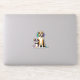 Ce design autocollant comporte deux chiens colorés, heureux et amicaux. Il s'agit d'un excellent design pour les propriétaires de chiens et les amoureux de les chiens.