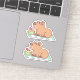 Un mignon doodle de capybara avec lunettes de soleil se reposant sur une serviette de plage en buvant une boisson fraîche à la noix de coco.