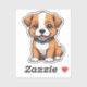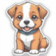 Ce mignon chiot de dessin animé assis avec sa langue sortie dans une expression joueuse. Le chiot heureux a un grand sourire et porte un collier bleu.