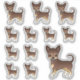 Illustration originale de Destei d'un chien de race Chihuahua brun chocolat et tan lisse. La conception est placée 12 fois sur la feuille en trois tailles différentes. Il y a un chien plus gros, trois chiens de taille moyenne et huit chiens de petite taille.