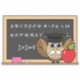 Illustration d'une chouette chouette maîtresse avec une adorable moustache blanche portant une casquette de graduation avec un moule jaune et tenant une pomme rouge. Il écrit sur le tableau et il enseigne l'alphabet lettre et un simple calcul mathématique. Ce dessin animé kawaii s'adresse aux amateurs d'oiseaux et aux amoureux des animaux, et est une idée cadeau pour la journée d'appréciation des enseignants à l'école.
