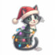 Sticker Christmas Cat Tuxedo black cat xmas lights kitty c