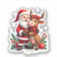 Sticker Christmas Highland Cow With Santa Scottish Vintage