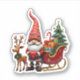 Sticker Christmas Light Gnome Santa Claus Riding Sleigh Hi