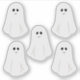 Cinq, blanc, mignon autocollants fantômes à ajouter à vos fêtes d'Halloween, projets, enveloppes et cadeaux.