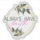Cet autocollant vinyle magnifique présente une citation « Toujours avoir la foi » avec un design floral, créant un mélange parfait de foi et d'encouragement. Idéal pour personnaliser les cahiers, les bouteilles d'eau, les ordinateurs portables, les étuis de téléphone portable, les planches à roulettes ou tout espace qui a besoin d'une touche d'inspiration et de grâce.